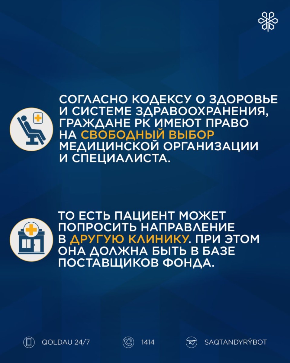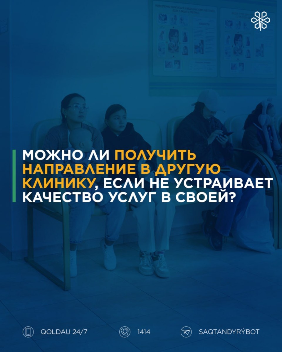 Меню » ОСМС » Памятки » Можно ли получить от терапевта своей поликлиники направление к узким специалистам или на диагностическое исследование в другую клинику, если пациента не устраивает качество оказания услуг в своей?
